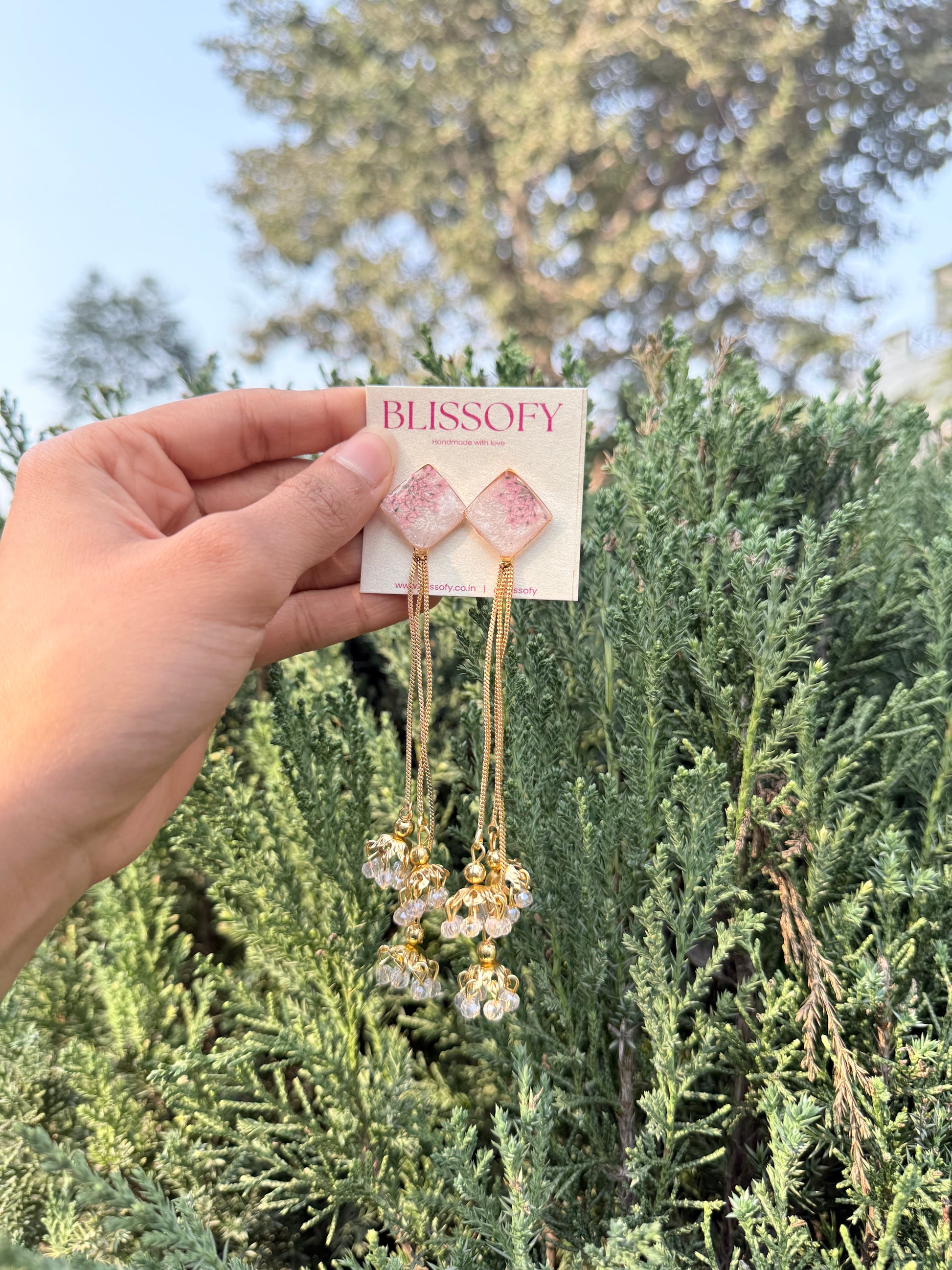 Features real preserved florals in soft blush tone