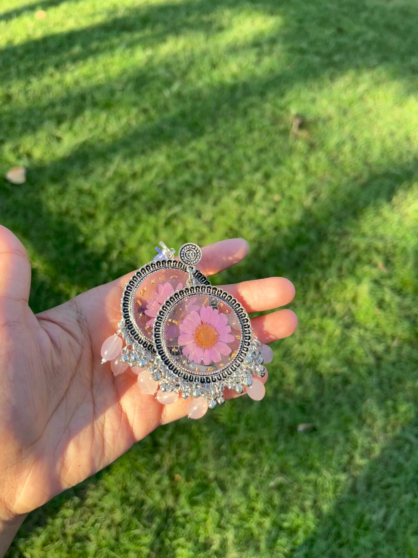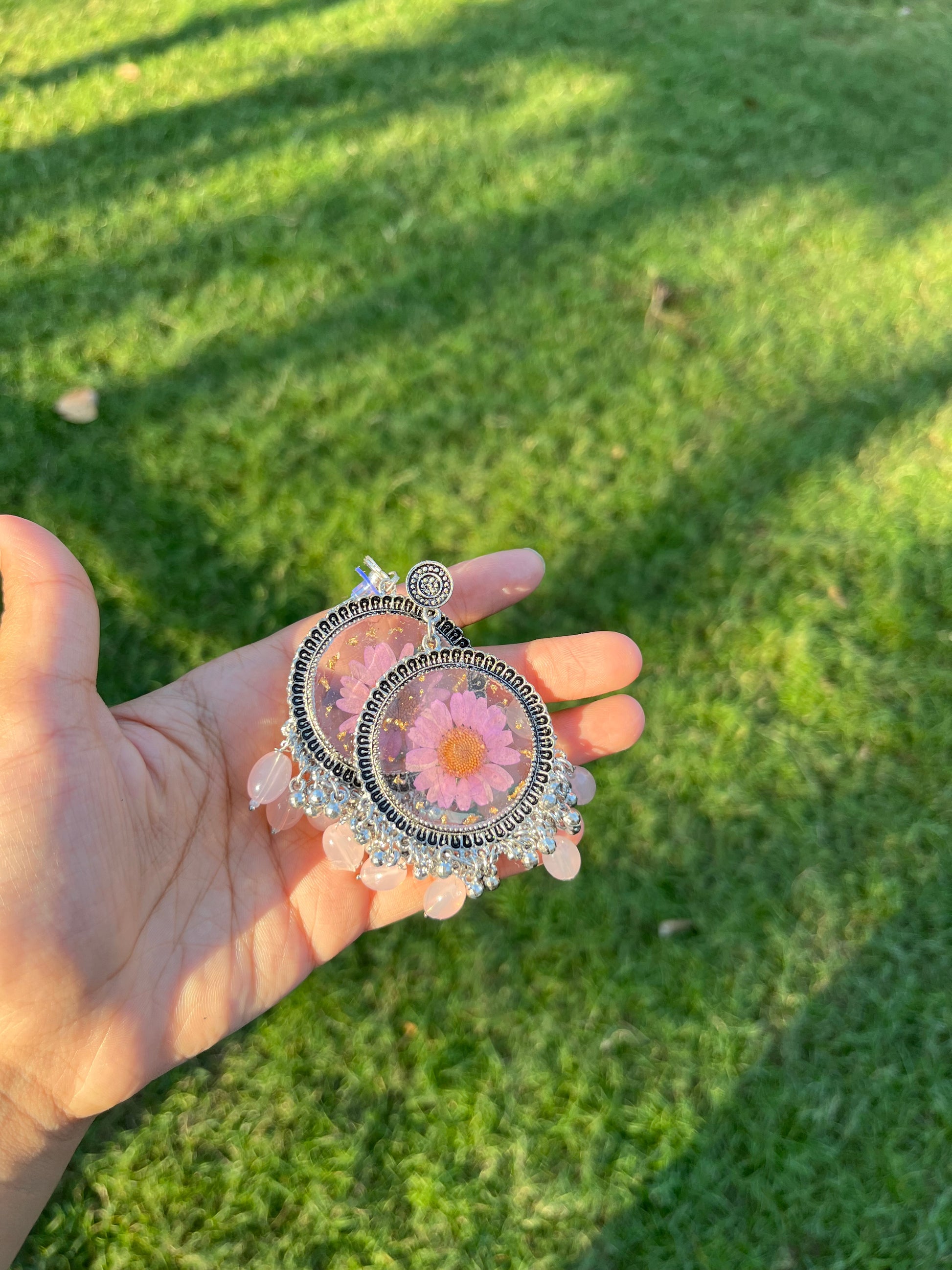 - **Unique Design**: Each jhumka features real flowers, making them one-of-a-kind.