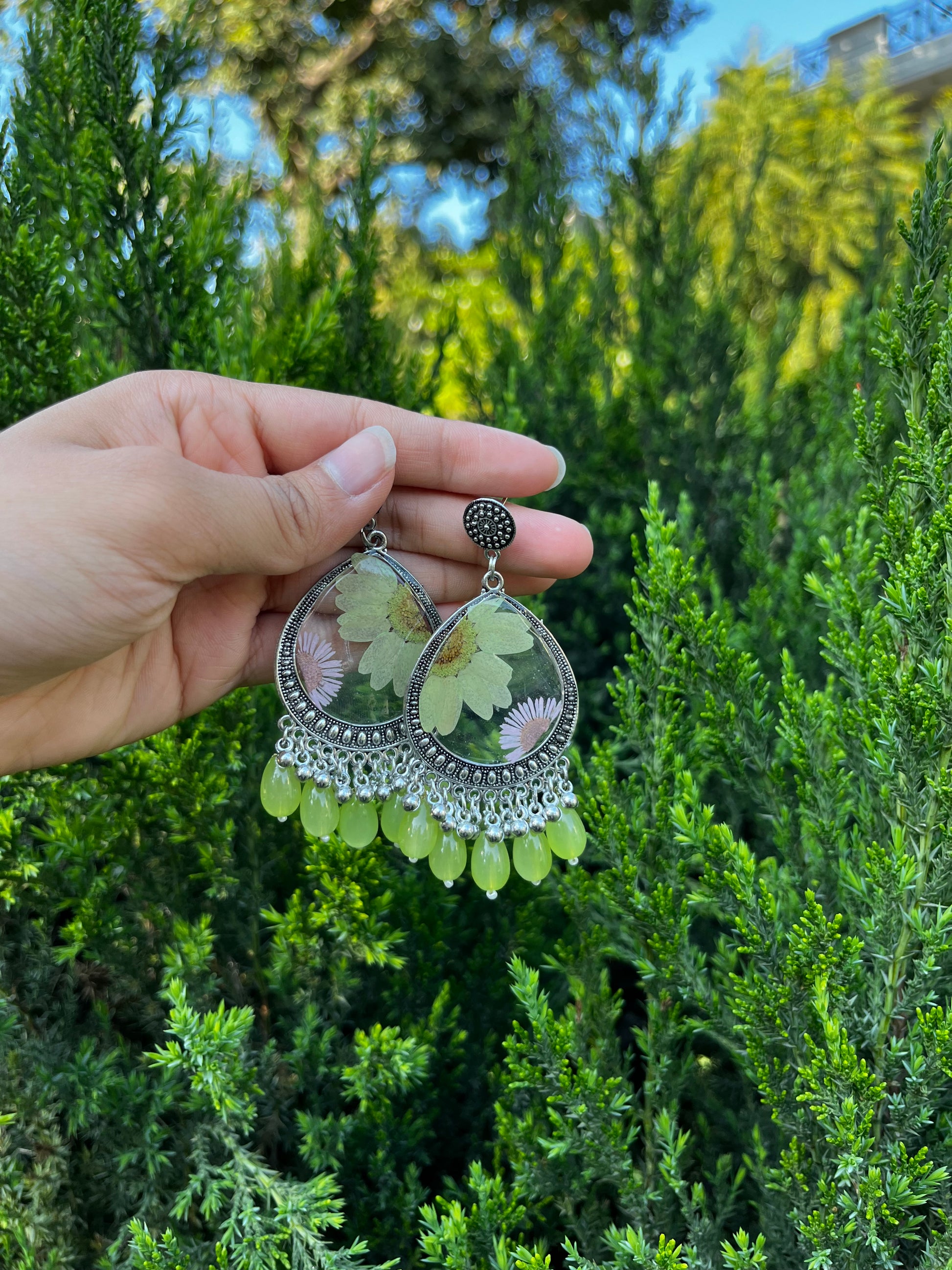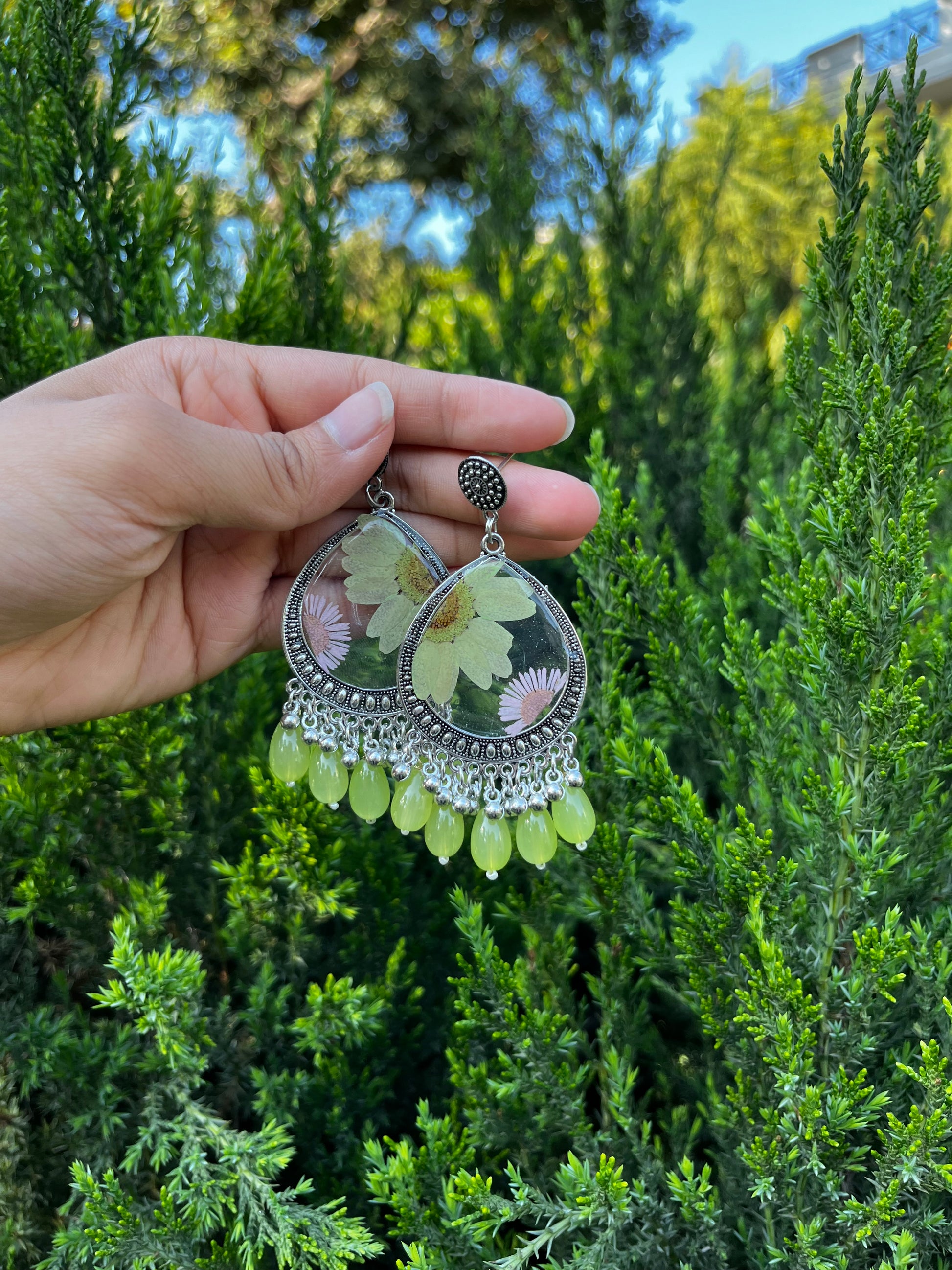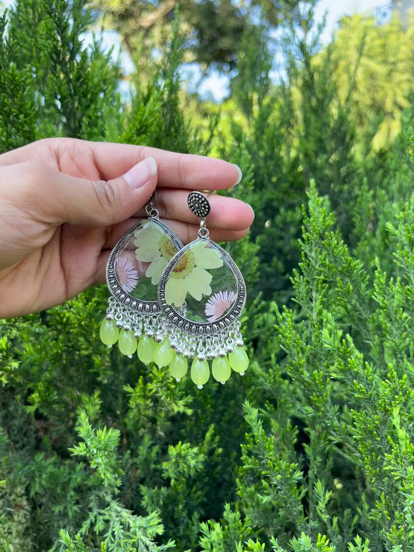 - **Unique Design**: Each jhumka features real flowers, making them one-of-a-kind.
