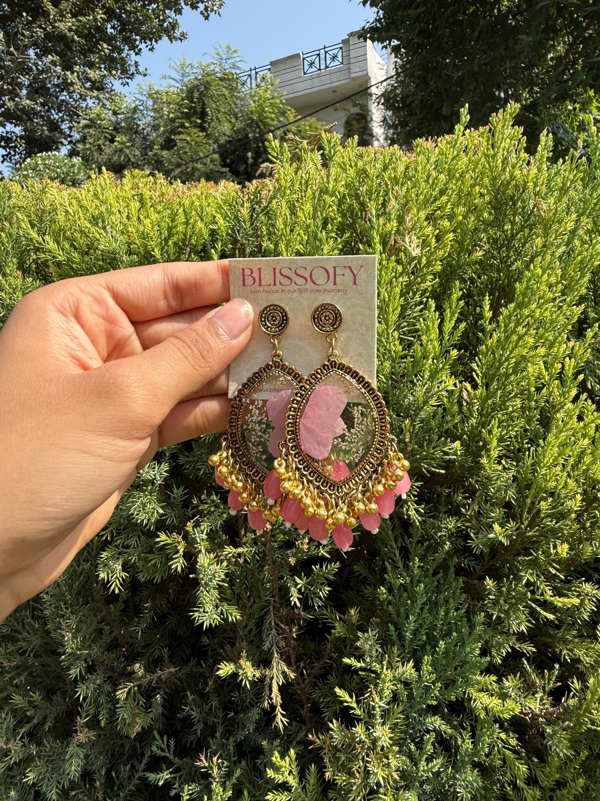 **Unique Design**: Each jhumka features real flowers, making them one-of-a-kind.