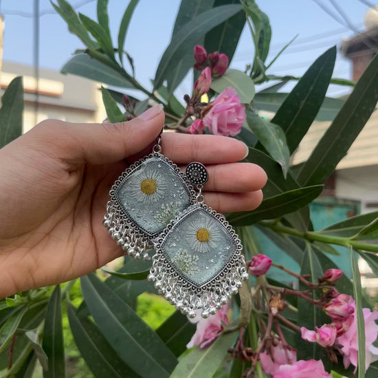 - **Unique Design**: Each jhumka features real flowers, making them one-of-a-kind.