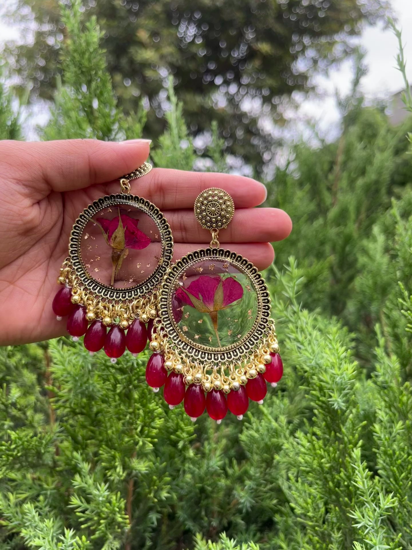 - **Unique Design**: Each jhumka features real flowers, making them one-of-a-kind.