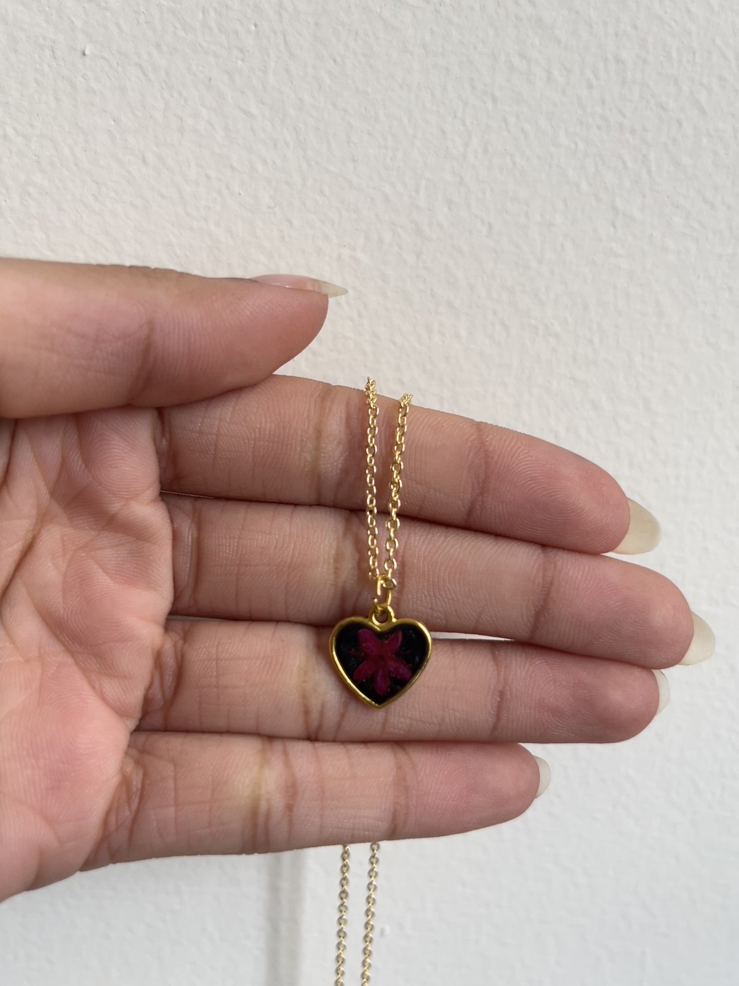 Real flower pendants with preserved blooms, set in anti-tarnish and waterproof materials.