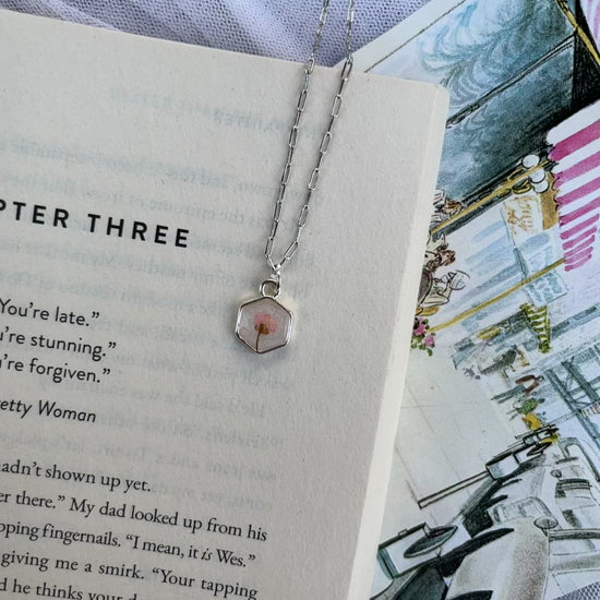 - **Design**: Features a tiny hexagonal pendant with a delicate flower inside.