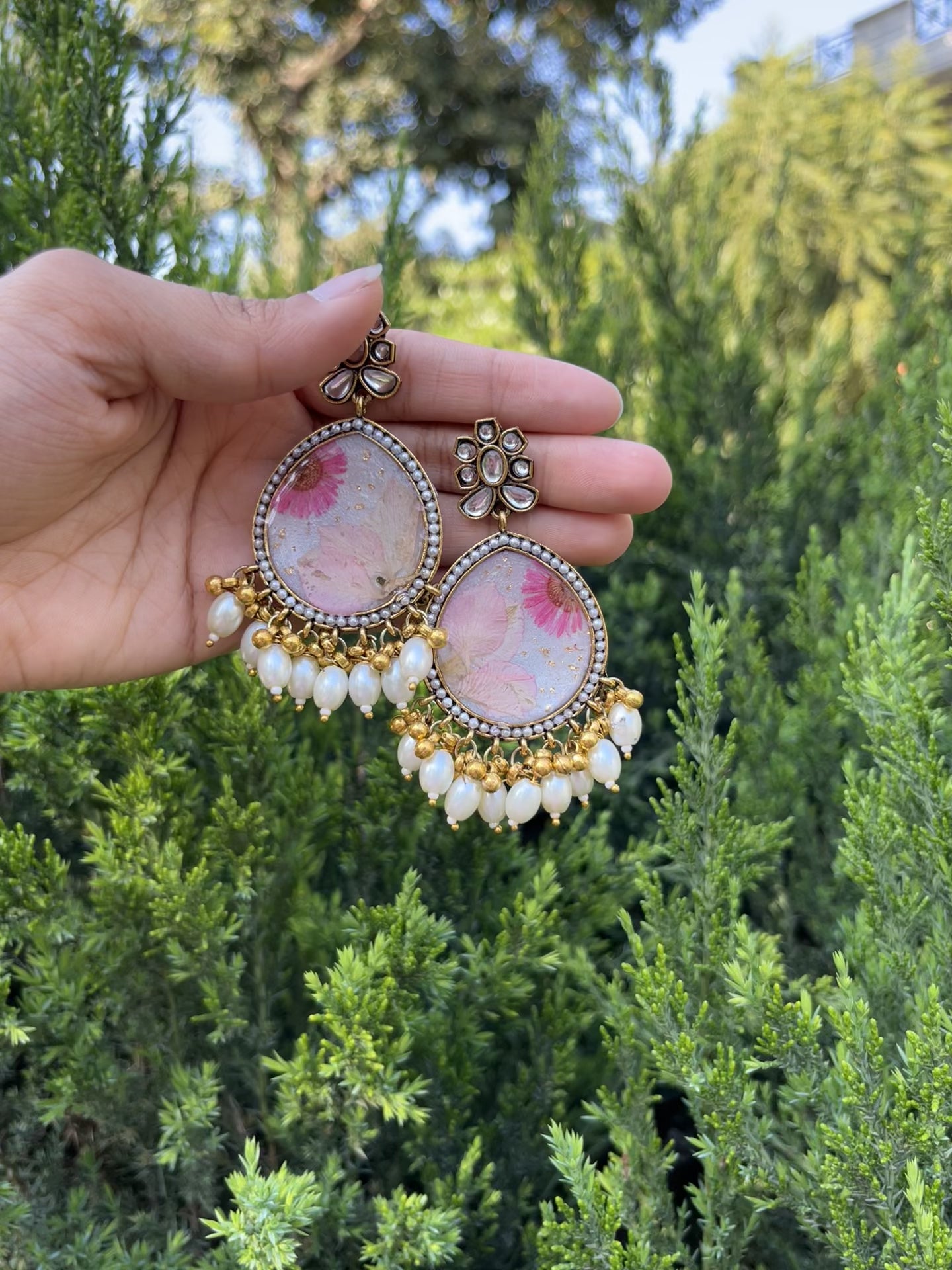 - **Unique Design**: Each jhumka features real flowers, making them one-of-a-kind.