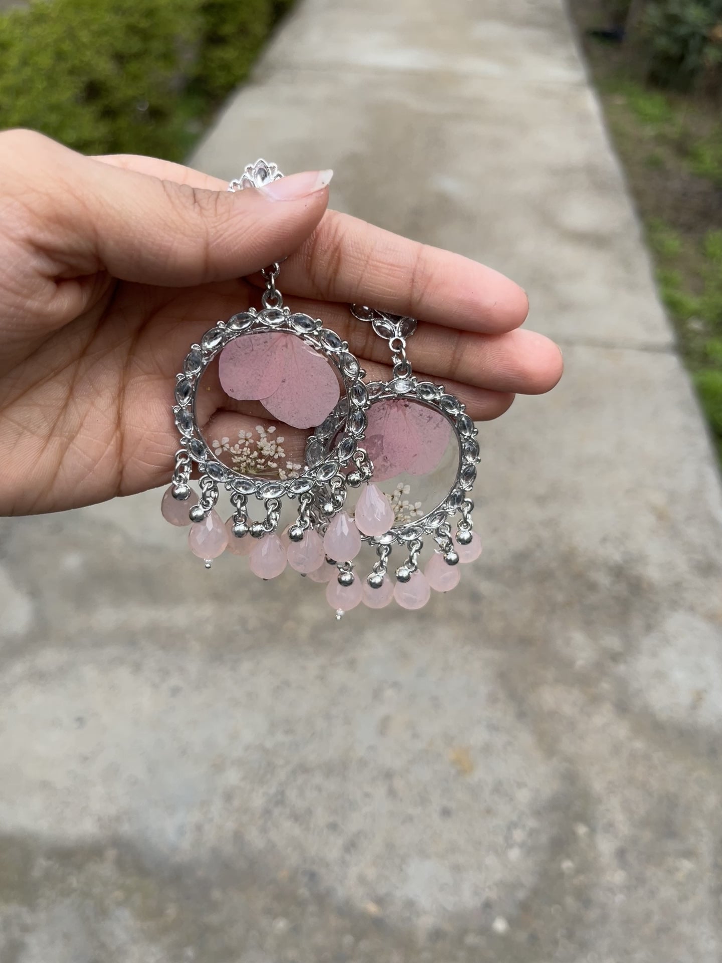 - **Unique Design**: Each jhumka features real flowers, making them one-of-a-kind.