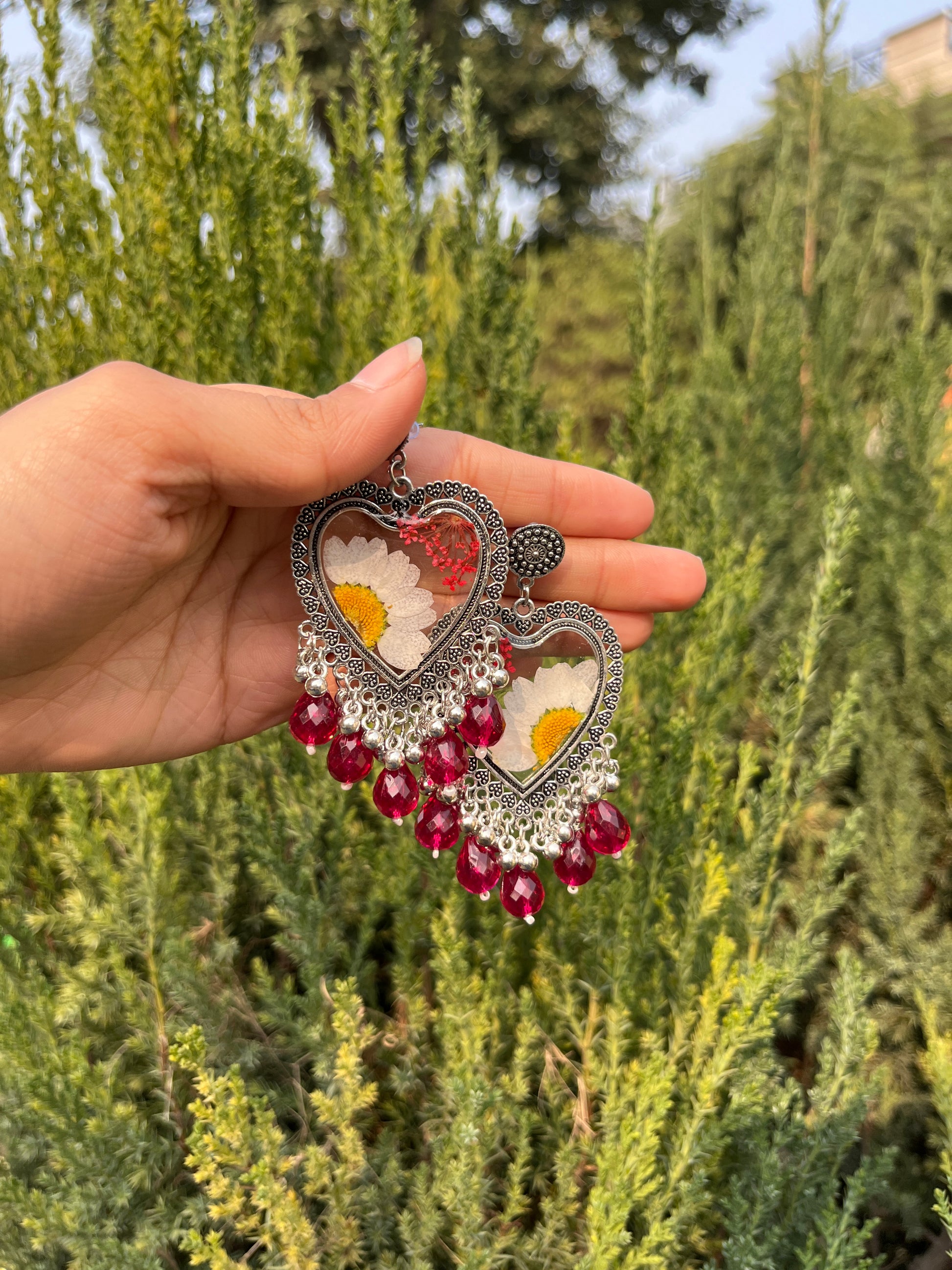 **Unique Design**: Each jhumka features real flowers, making them one-of-a-kind.
