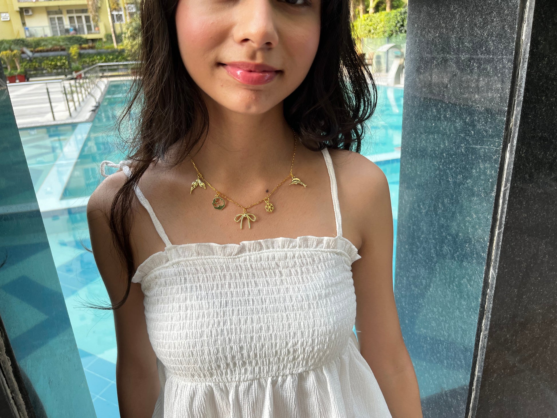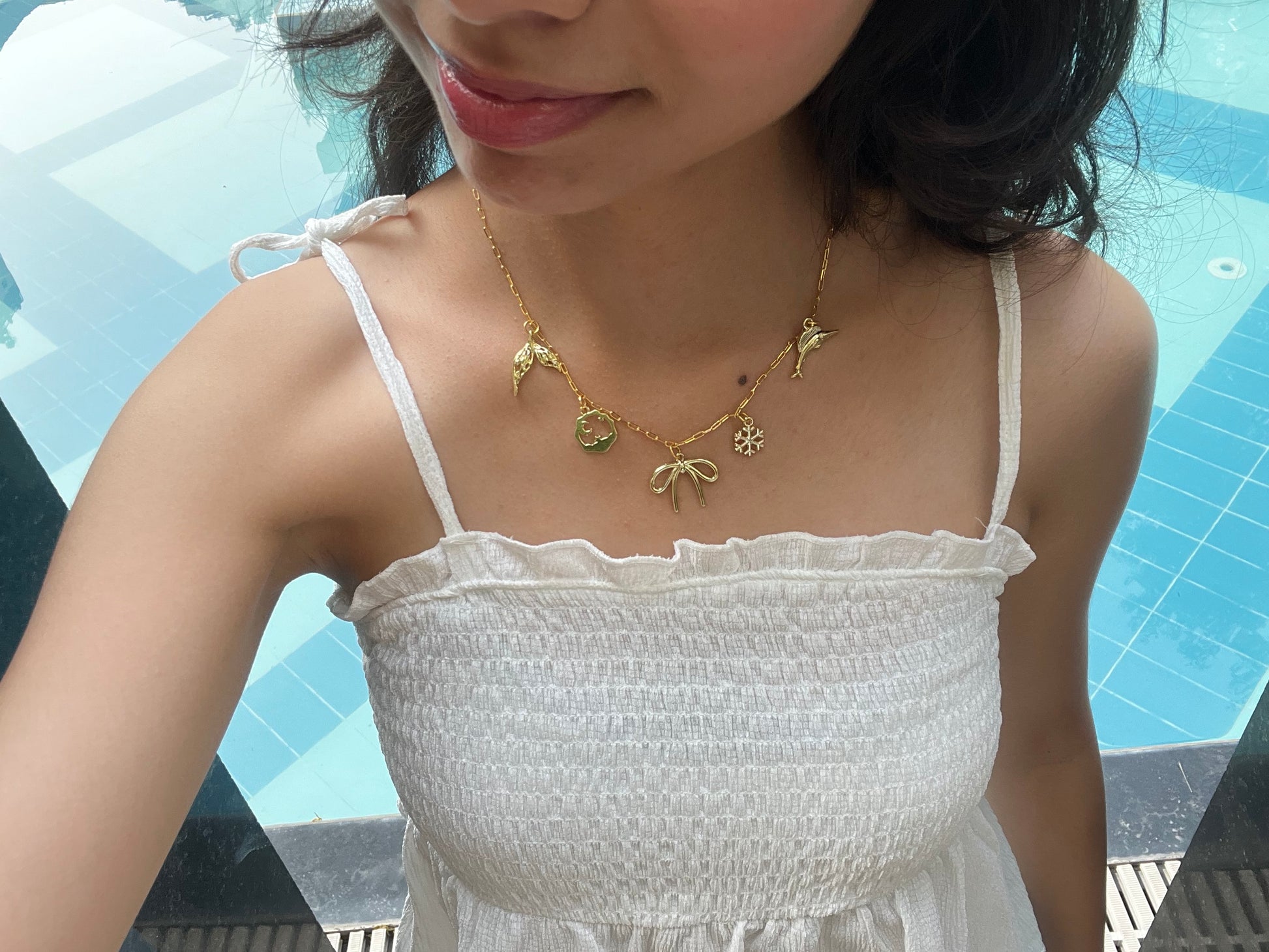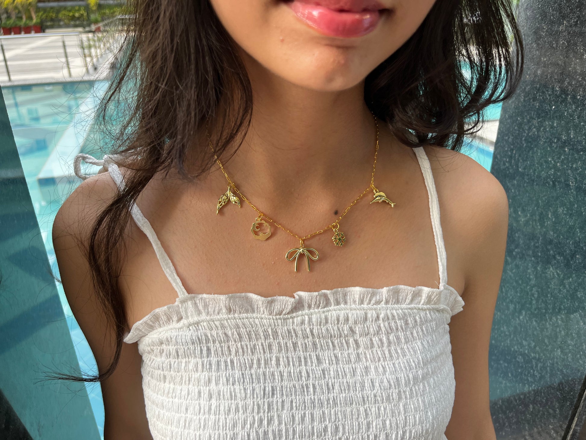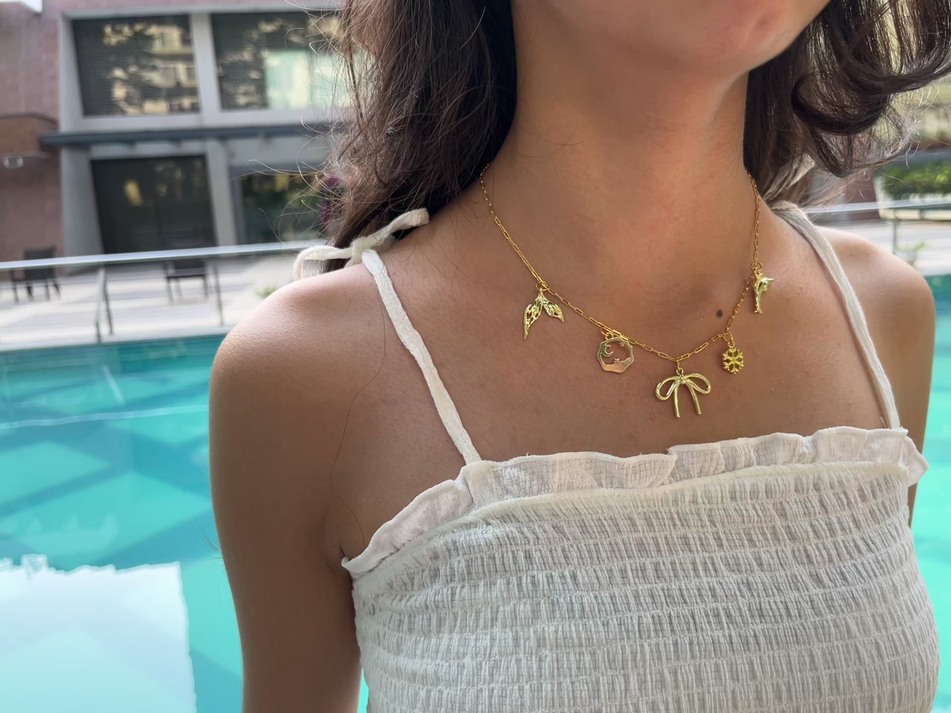A golden dream of the sea—SeaWhim features delicate ocean-inspired charms like waves, shells, mermaids, and a tiny bow. Designed for sunlit days and effortless style, it’s your go-to piece for summer and beyond.