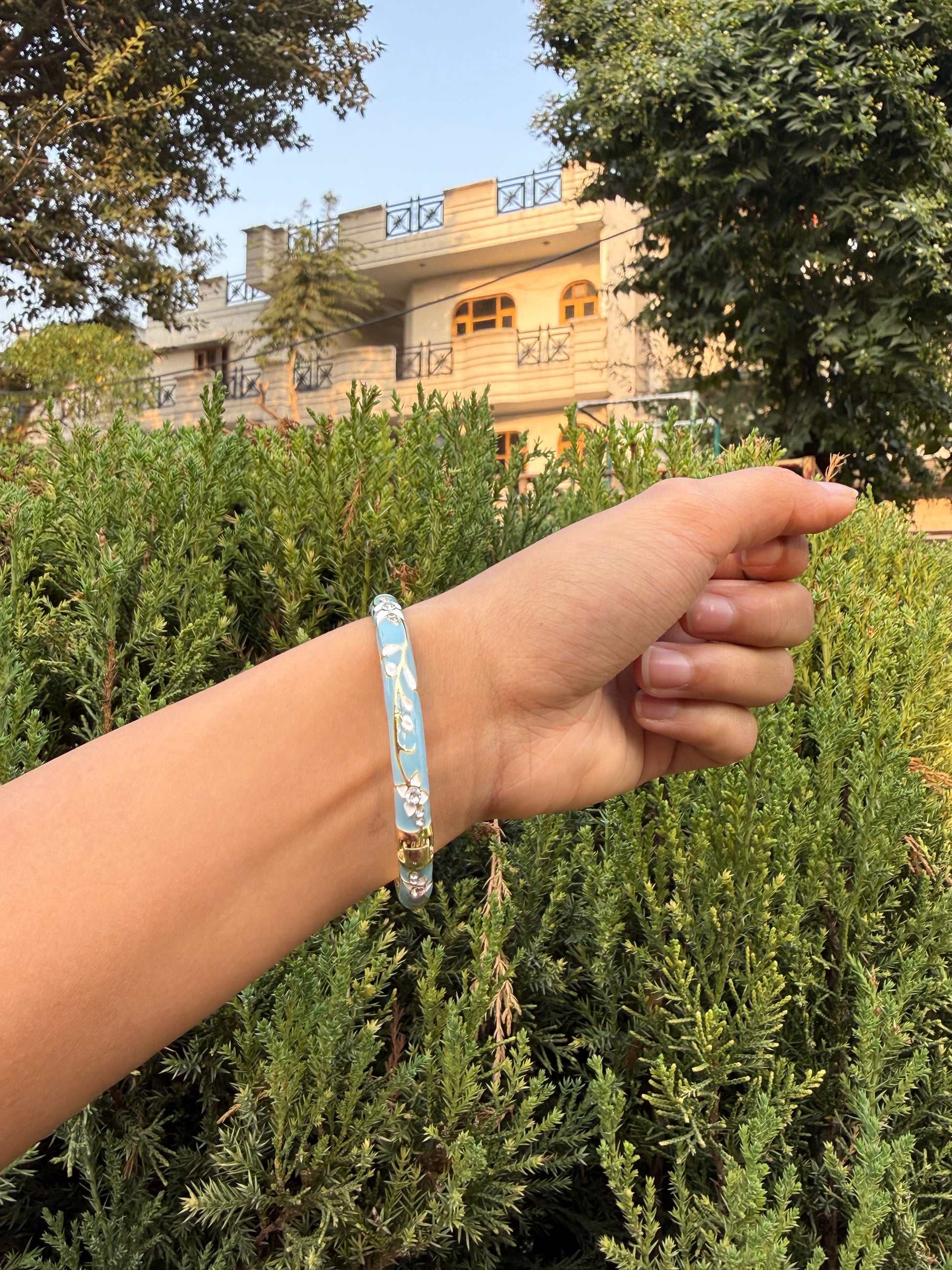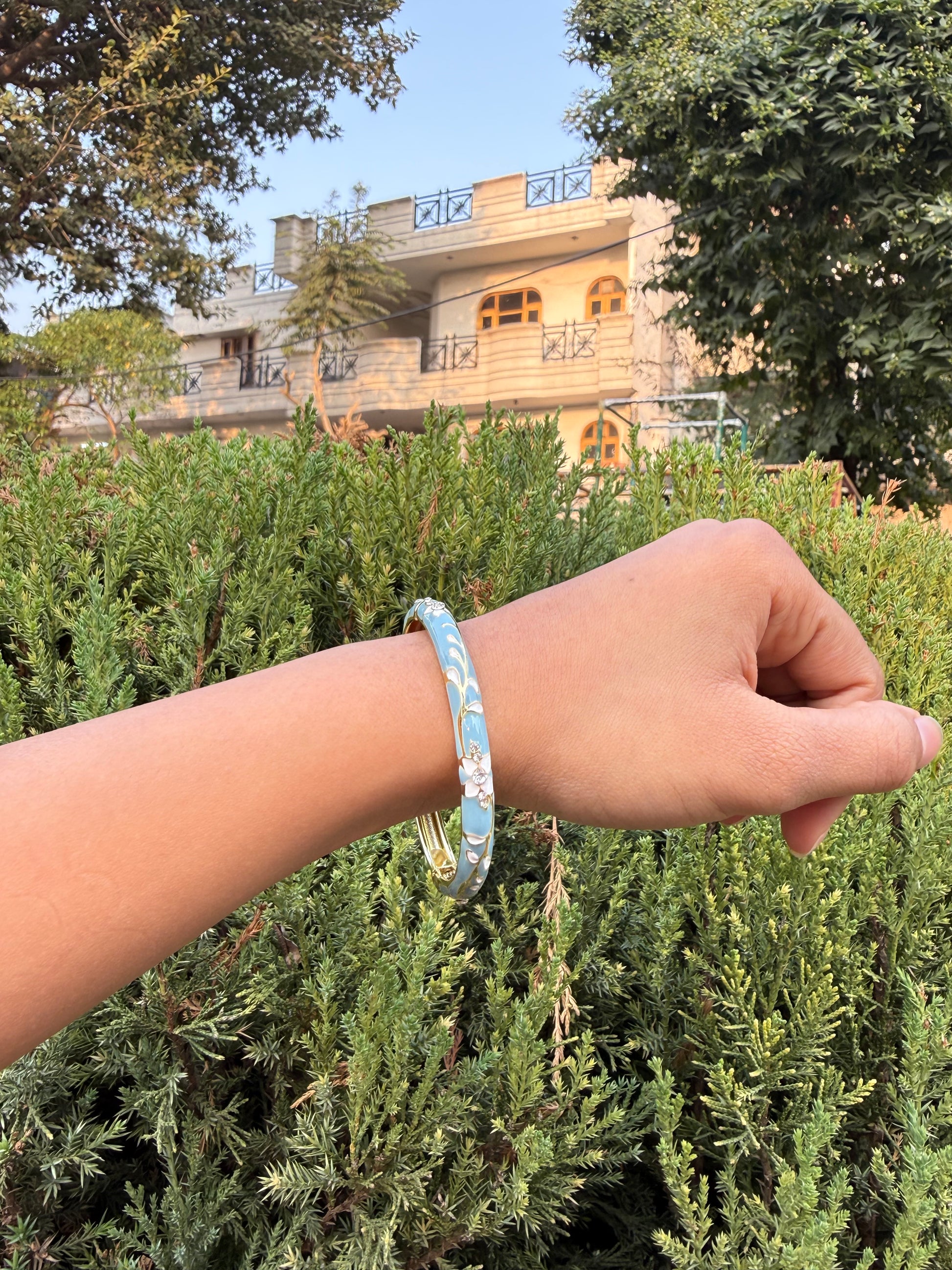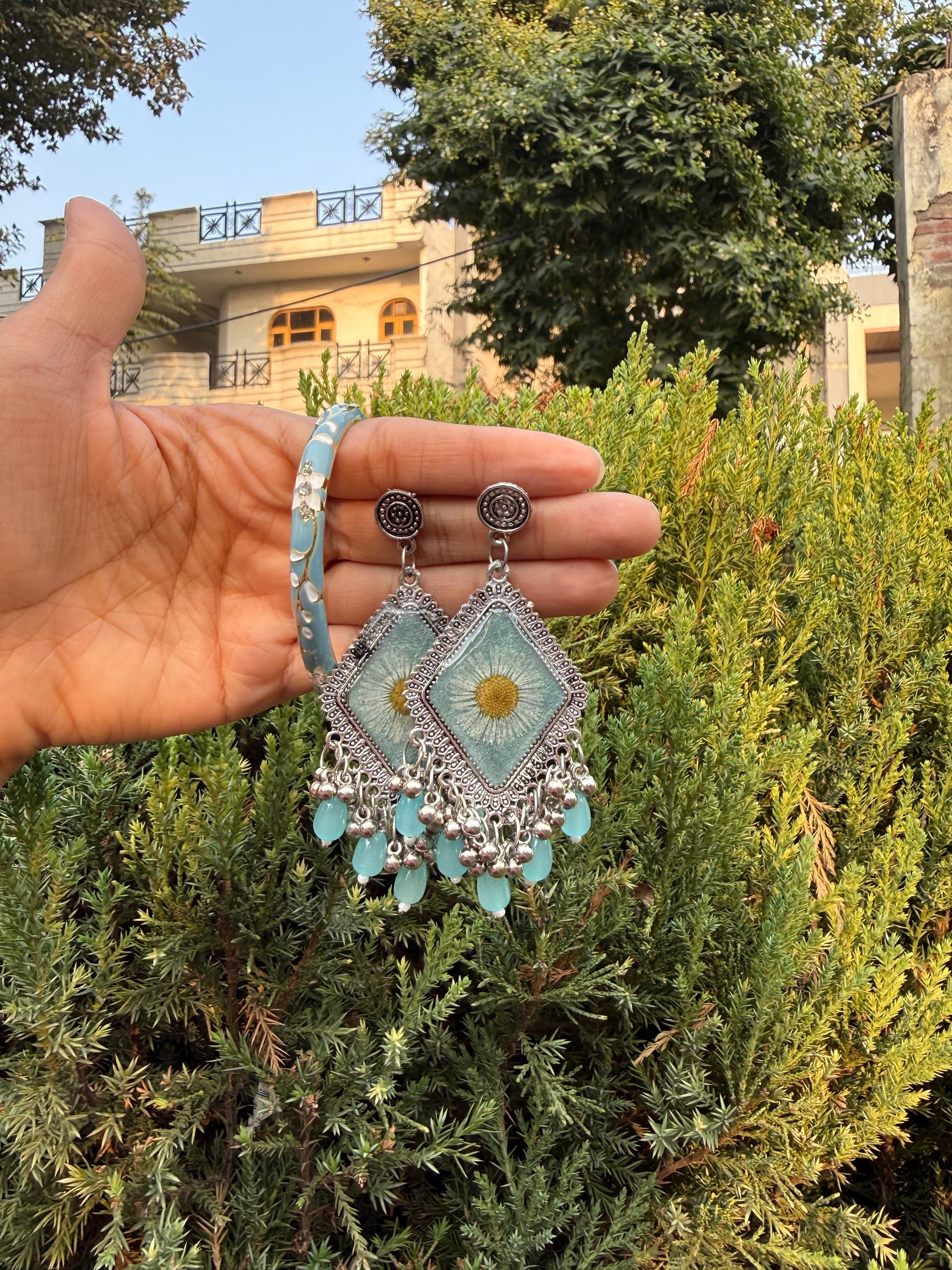 Matching bangles & jhumkas for a perfectly coordinated look.