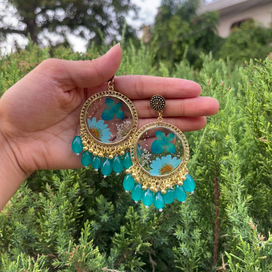 - **Unique Design**: Each jhumka features real flowers, making them one-of-a-kind.