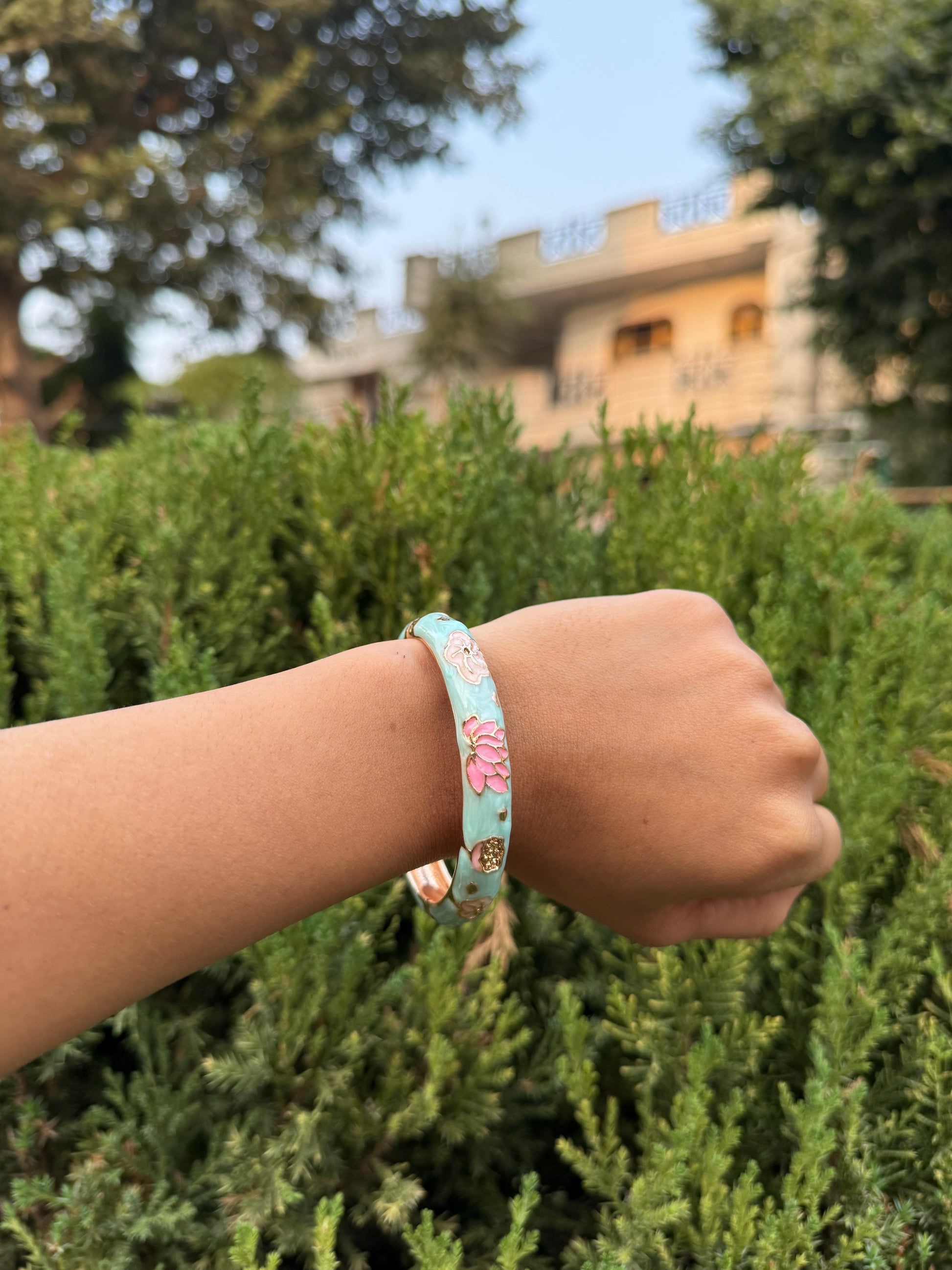 Matching bangles & jhumkas for a perfectly coordinated look.